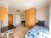 ...NWU Campus. This unit shares a kitchen and bathroom with 2 spacious bedrooms with built-in cupboards. Each bedroom has a sliding door onto the pool and a Trellidoor safety gate. The complex offers excellent safety with CCTV Cameras & biometric access...