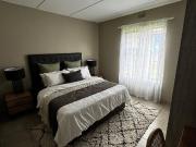 ...apartment is situated within a secure estate in Wapadrand, Pretoria. The functional layout includes a well-appointed kitchen featuring light wood cabinetry, dark gray countertops, and practical tiled splashbacks. Equipped with a built-in oven and hob...