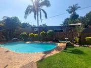 ...5-bedroom home is located in a quiet part of Pretoria North, with beautiful views of t...ment space both inside and outside. Main House Features: Comfortable lounge and bi...ra living space With air conditioning, a swimming pool, and several braai spots, t...